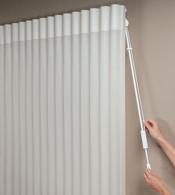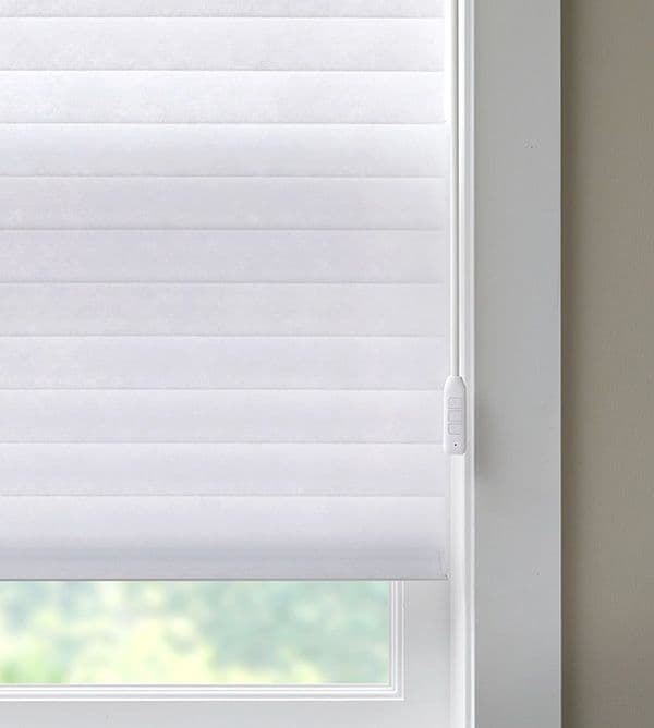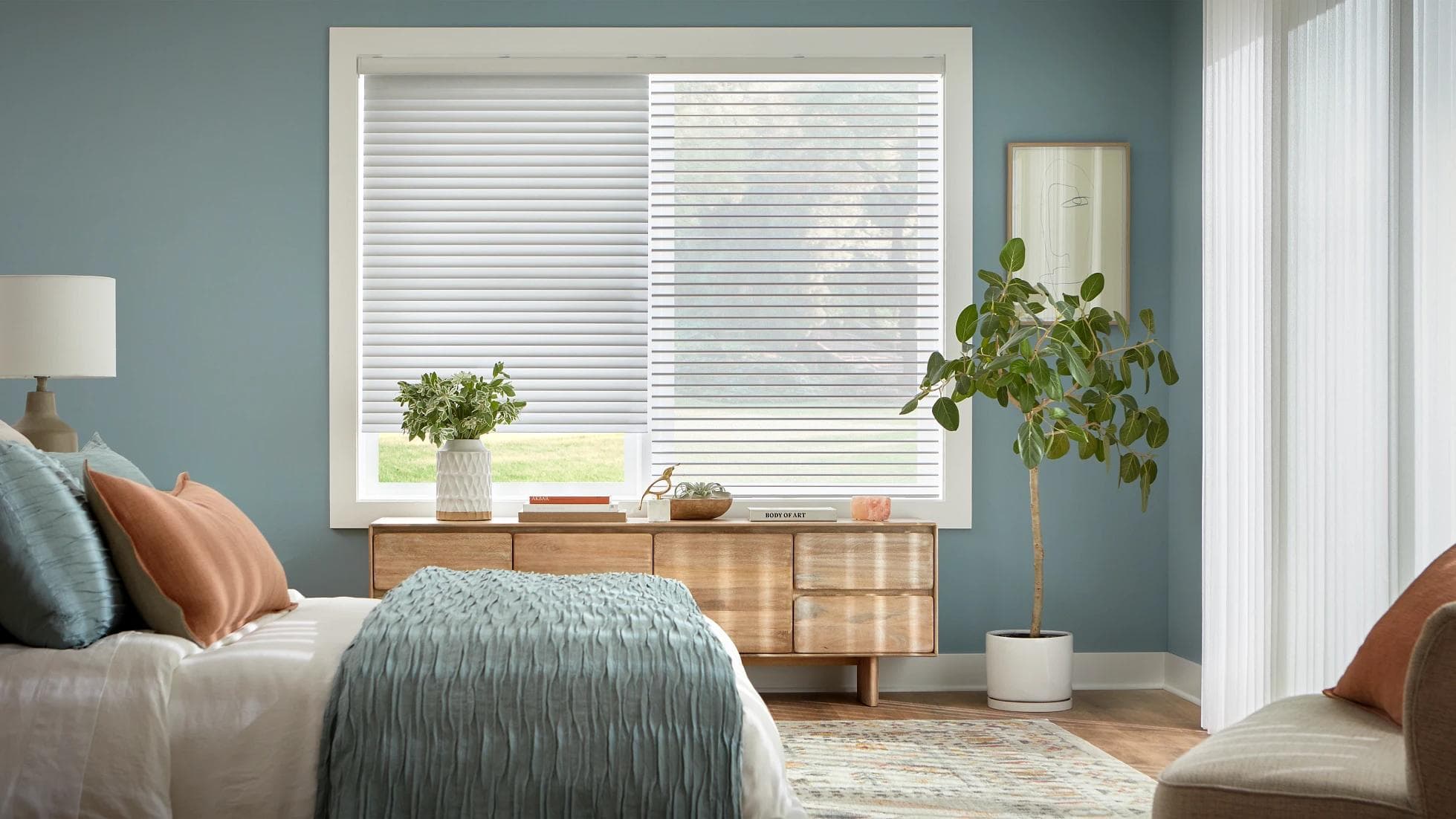 Our Sheer Shadings combine the beauty of a light filtering sheer with the function of a blind for a soft glow that you control. Fabric vanes are suspended between two sheer panels for nuanced brightness. During the day, tilt the vanes open so you can see out while still enjoying privacy. At night, tilt the vanes closed and voila…privacy assured.