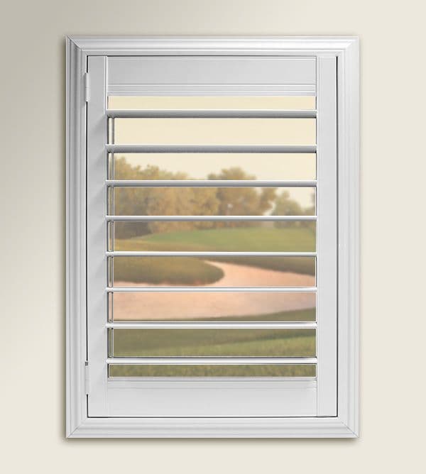UltraSatin™ finish for the look of painted wood. Soft matte appearance that will never have to be repainted or refinished, suitable for any room. All colors are available in 2-1/2", 3-1/2" and 4-1/2" louvers. Images below are shown in 3-1/2" louvers.